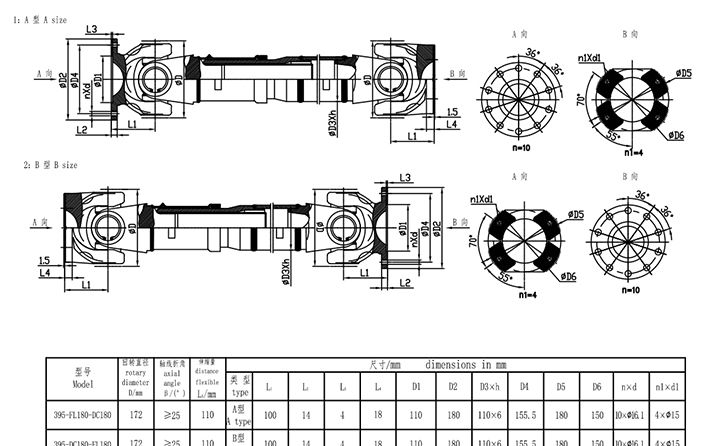 A型、B型傳動軸
